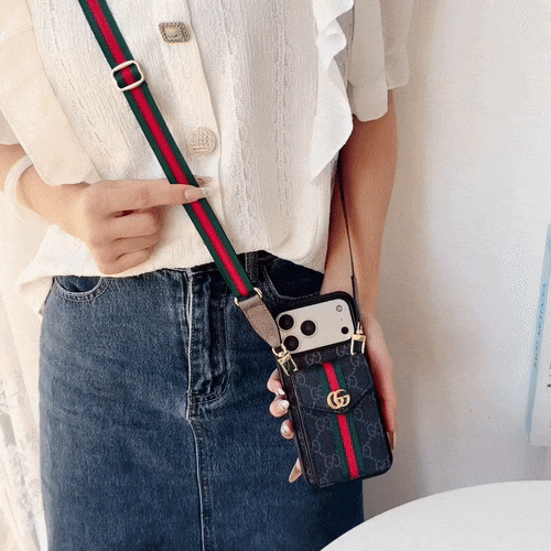 The Classic Leather GG iPhone Case with Card Holder and Strap in black blends elegance and practicality. Crafted from premium leather, it offers secure storage, reliable protection, and a luxurious Gucci-inspired design for everyday sophistication.