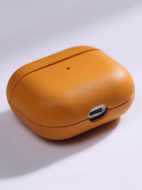Orange leather case for AirPods Pro offers premium protection, sleek style, and easy access while keeping your earbuds safe and secure.