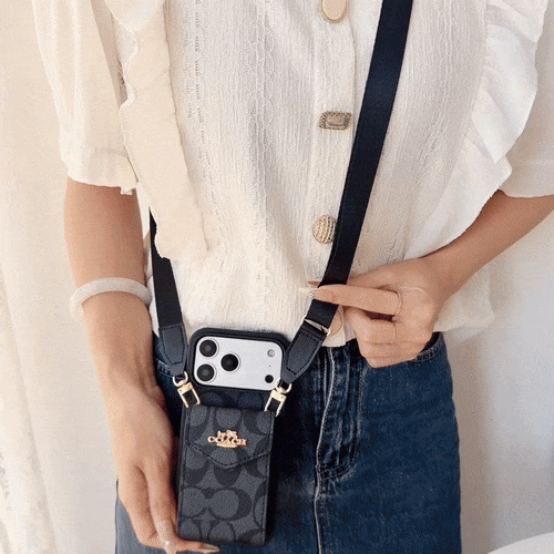 This leather CH iPhone case with card holder and strap combines style and functionality. Crafted from premium leather, it offers secure card storage, full phone protection, and the sophisticated appeal of Coach’s latest design.