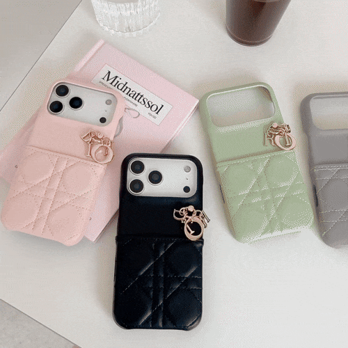 Stylish leather CD iPhone case with card holder in pink for the iPhone 17 series, offering refined craftsmanship, practical storage, and elegant everyday protection.